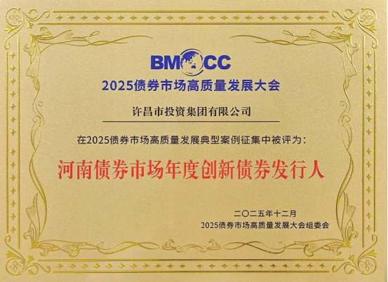 近日,2025債券市場高質(zhì)量發(fā)展大會在鄭州隆重舉行。許昌市投資集團(tuán)有限公司憑借在債券融資領(lǐng)域的卓越創(chuàng)新實踐與突出表現(xiàn),在2025債券市場高質(zhì)量發(fā)展典型案例征集中,榮獲大會頒發(fā)的“河南債券市場年度創(chuàng)新債券發(fā)行人”稱號。