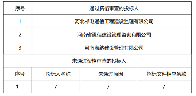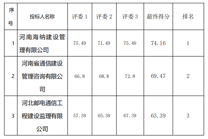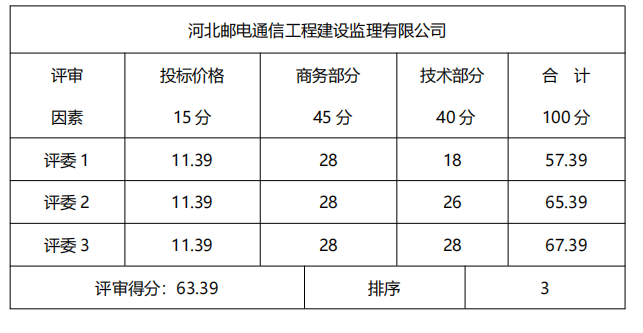 (一)中標(biāo)候選人名稱:河北郵電通信工程建設(shè)監(jiān)理有限公司