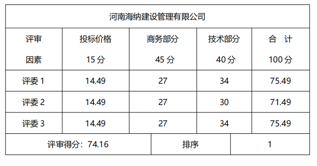 (一)中標(biāo)候選人名稱:河南海納建設(shè)管理有限公司
